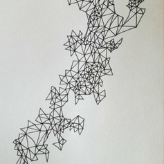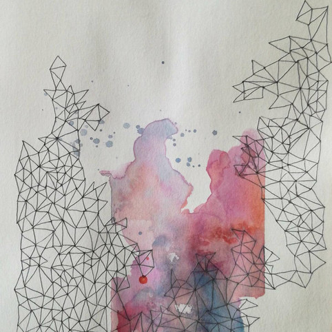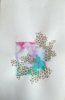 This sketchbook focused on an exploration of form and structure, specifically looking into the relationships between organic and highly controlled and stylised forms. This sketchbook is a way to nurture my interests in repetitive and/or geometric pattern, relating back to ideas of order vs. chaos examined during the completion of my Degree. In the methods and processes used to create each piece, the watercolour represents chaos as the final outcome, ultimately out of my control, whereas the superimposed pattern allows for full control. However visually it is the pattern which appears uncontrollable and erratic in contrast to the watercolour which is contained within the same 7x7cm square